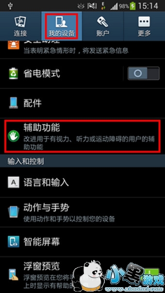 选择【我的设备】,向上滑动屏幕,点击【辅助功能】。