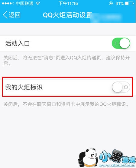 3、在QQ火炬活动设置的最底部找到一项名为“我的火炬标”选项,将其开关关闭就可以了,如下图所示。
