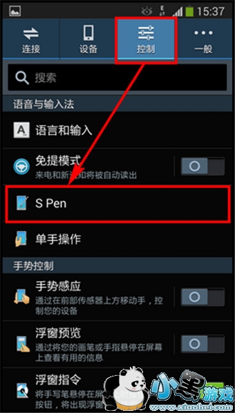 点击【控制】,选择【S Pen】。