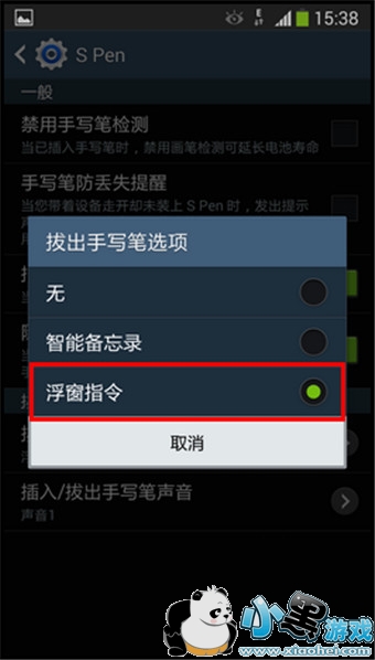 完成以上操作后,拔出S Pen时,将自动弹出浮窗指令。