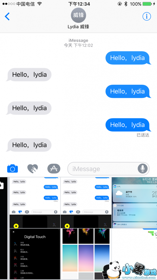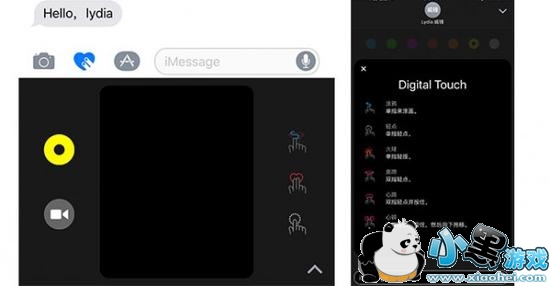 - 短信发送 Digital Touch 的界面有细微的改动,改后更简洁,不再用文字(涂鸦、轻点……)说明 Digital Touch 的手势,六种手势仅用图标示意,并会自动变换演示。当然,如果还不懂如何操作,可以点击图标来弹出文字说明。