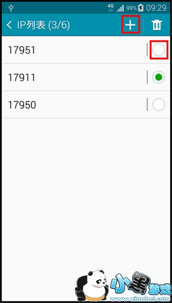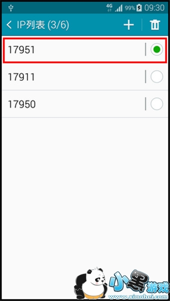 点击屏幕右上方的【+】图标,可添加IP号码,如您想使用的IP号码在列表中有显示,直接选择即可,这里以直接选择【17951】为例。