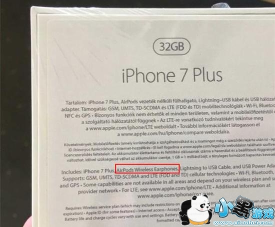 值得注意的是,我们在包装盒上看到,iPhone 7竟然也免费配备了无线耳机AirPods(苹果良心?)。不过在其它盒子上出现的Lightning转3.5mm接口的转换器,iPhone 7似乎并没有附送。(还是逼你买更大更贵的?)