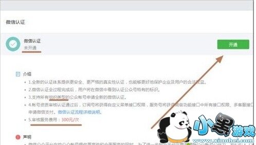 必要条件:开启该功能的流程是注册微信公众账号,并获得微信认证后才可申请(认证需缴纳300RMB)。