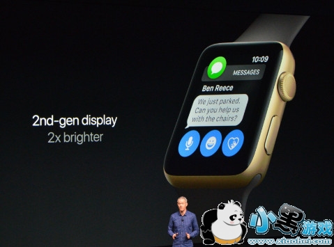 Apple Watch图像清晰度提升五倍。终于有GPS!实时连接卫星。Night Sky 4等新应用可以运行60fps。新的S2处理器,双核心CPU,提速50%,新的GPU,性能翻番。