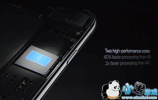 最后一个全新的设计,强大的A10处理器。两个高性能大核心,比A9快40%,比A8快一倍。64位四核!!!A10 Fuison。33亿个晶体管。