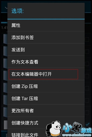 长按该文件就会出现一下对话框,这里我们选择“在文本编辑器中打开”