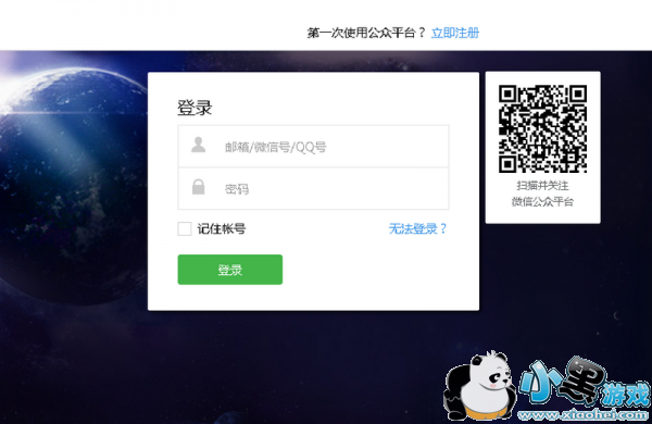 第一步:先进入微信公众平台。点击登入界面上的“立即注册”。