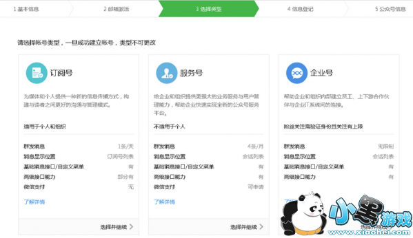 第四步:选择公众号类型,这里需要注意的是,一旦你成功建立,类型这个事不可更改的。