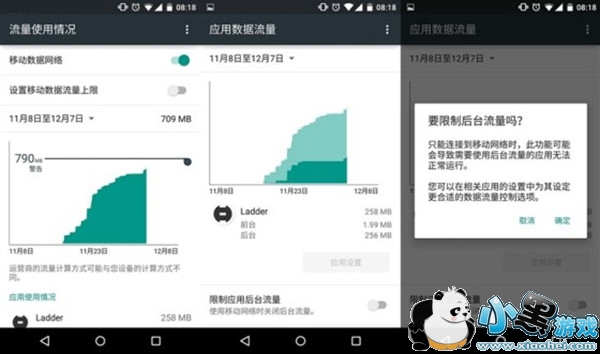 Android 5.0系统对这个功能进行了一定增强,可以单独选择应用程序进行后台流量限制,方法是点击设置——流量使用情况——应用名称——限制应用流量后台。这样就能防止使用移动网络时,应用在后台偷跑流量了。