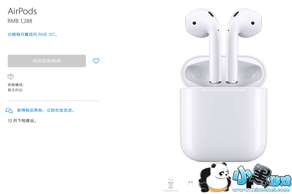 全新的AirPods无线耳机10月下旬开售,售价RMB1288元。