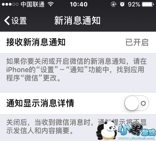 我们很多使用微信的用户为了保护消息隐私都会设置关闭通知显示消息详情【设置-新消息通知-通知显示详情(关闭)】这样一来,当我们收到微信消息时,通知提示将不显示发信人和内容摘要。在之前iOS系统版本中,锁屏界面下的微信消息提示只会显示“你收到了一条微信消息”这样一句话。现在很多用户发现,iOS 10系统下的锁屏微信消息增加显示了人名(发信人的名字)。因此一些重度隐私患者觉得这样显示也是暴露消息隐私的一部分。但是目前并没有什么设置办法可以取消显示人名,只能等待微信的更新或者系统的更新了。