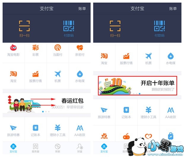 2.在滚动框里向左滑动进入“开启十年账单”