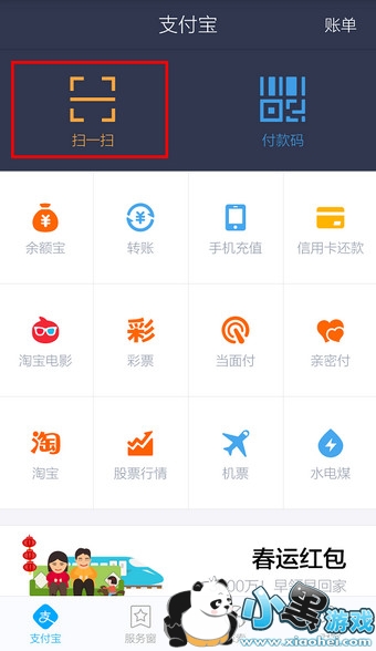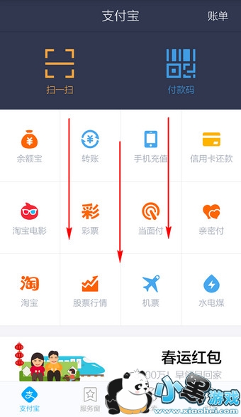 在手机中打开支付宝钱包