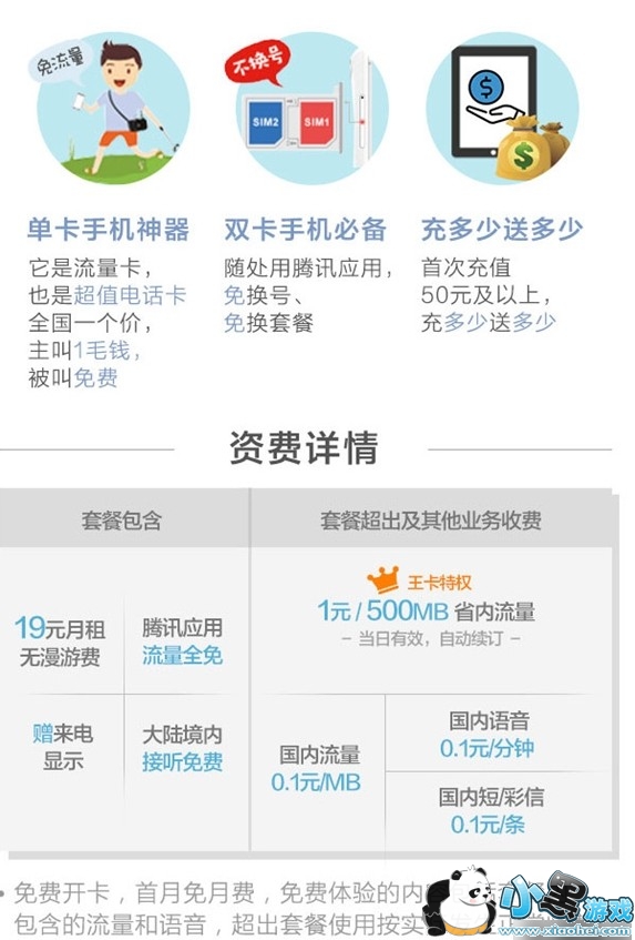 然后,腾讯小王卡是腾讯基于现在免费运营170号段的一个产品,资费很便宜,第一个月是免费体验,大家如果有需要可以入手。目前广东,陕西,湖北,重庆,用户可以申请。当然如果你超出套餐资费,国内语音、流量、彩信皆为0.1元,可以说是相当便宜,为你节省了一大笔话费!