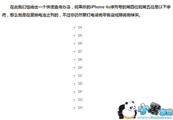 在此我们也绝出一个快速查itt办法,如采你的iPhone 6s序列号的第四位和第五位g以下字符,那么躭是在更换电池之列的,不过你仍然要打电话向零售店核实。
