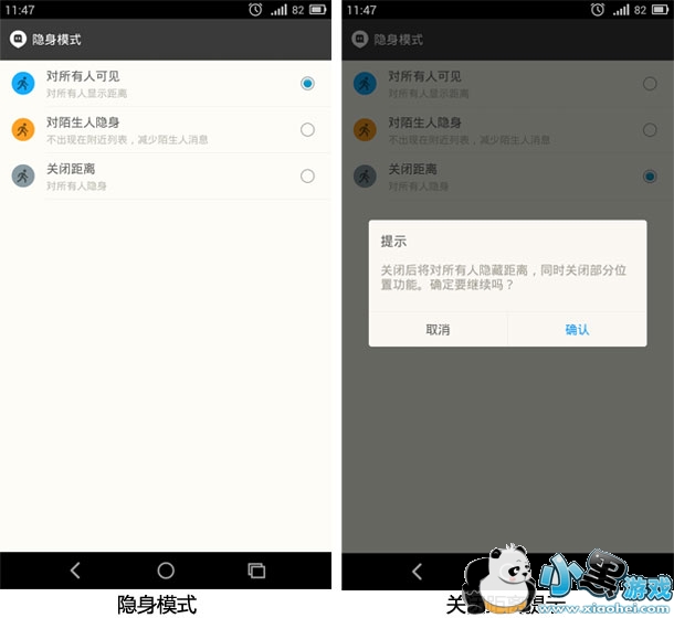 陌陌不像微信有专门的隐私设置项,仅提供隐私模式选项,进入方式:个人-设置-隐身模式,里面包含对所有人可见、对陌生人隐身、关闭距离,这个功能主要是提供用户选择是否出现在陌生人附近的人列表里,设置对陌生人隐身或关闭距离就不会让陌生人找到你。