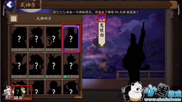 首先,进入大家打开自己右下角的卷轴,进入自己的“式神录”!然后如下图所示大家可以看到PC6苹果网小编手机截图当中左下角的式神旁边的红框里面有一个“碎片”的图标,点击碎片图标即可进入阴阳师百鬼契约书目录!