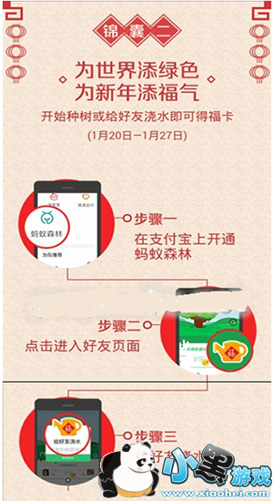 3、从1月20日开始到除夕夜22点之前,用户开通蚂蚁森林或者给好友浇水,可以随机获得福卡。