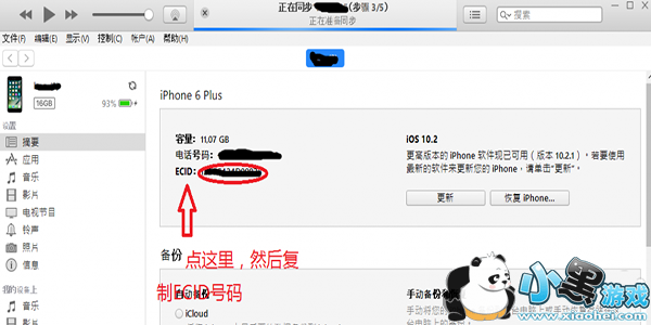 1、我们首先需要用iTunes助手查询iPhone的ECID,点击下图的标记位置,即可看到 ECID,然后复制。