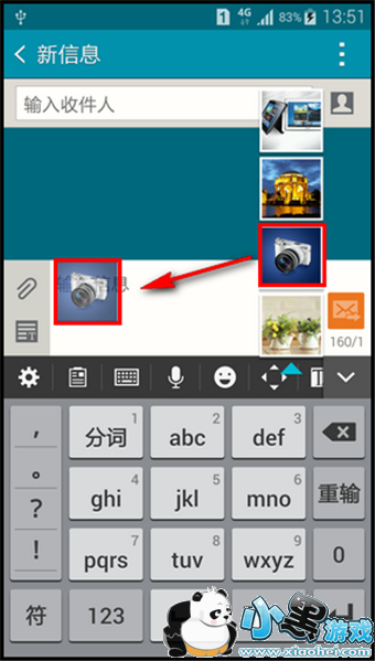 11.点住想要分享到编写信息的截图不松手,将其拖动到输入信息位置后,松手即可。