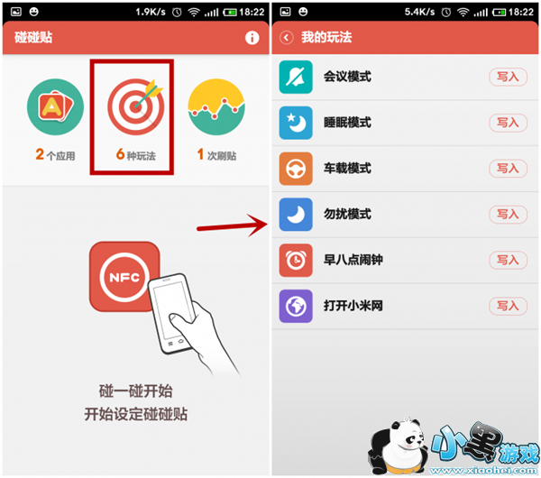 将支持NFC的手机触碰一下小米NFC碰碰贴线圈,然后进入设置即可,如下图所示