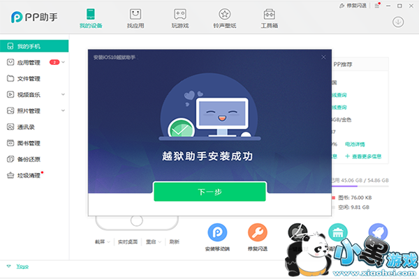 4、iOS10越狱助手安装成功后,请点击【下一步】继续操作