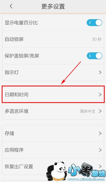 进入【更多设置】后向下滑动,选择【日期和时间】