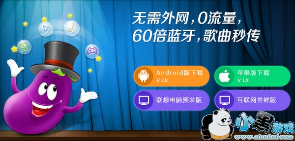 A:茄子快传,与朋友分享手机内容的极速传输工具。速度是蓝牙的60倍,一首歌一秒就传完!支持2人分享。