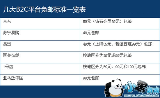 据媒体了解,近年来各B2C电商平台免邮运费标准一直呈上涨趋势,目前已基本上达到了50元起步。几大B2C电商平台免邮标准见下图: