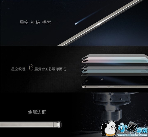 在设计方面,荣耀6采用6层复合工艺雕琢而成的星空纹理后盖,金属边框。同时采用的玻璃纤维基底层,非常坚固。