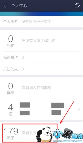 在个人中心里向下滑,找到底部的【帖子】点击进入