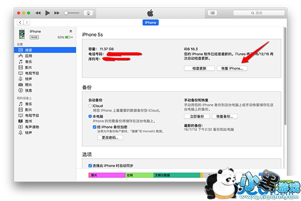 3. 在 iTunes 的设备信息界面,按住 Option 键(Windows 用户在按住 Shift 键),单击「恢复 iPhone…」按钮;