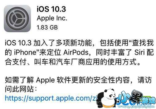 iOS 10.3是iOS 10系统的第三次重大版本更新。iOS 10.3中同样包含很多新功能,其中最重要的主打功能就是“查找 AirPods”,这是苹果官方推出的AirPods查找工具,可以方便用户寻找AirPods。除了 “查找AirPods”,iOS 10.3还对系统底层进行了优化,当用户完成升级后,iOS设备的文件系统会更新至全新的苹果文件系统APFS。