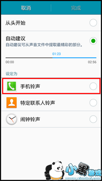完成以上操作后,当手机来电时,将从歌曲的重点部分响起铃声。