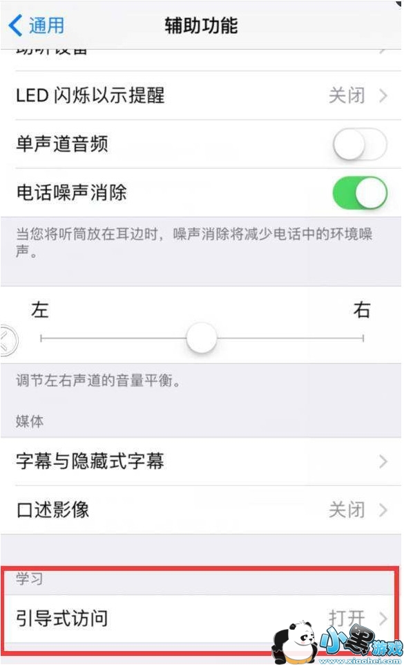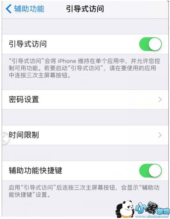 打开以后你可以连按三次Home键调出引导式访问功能。