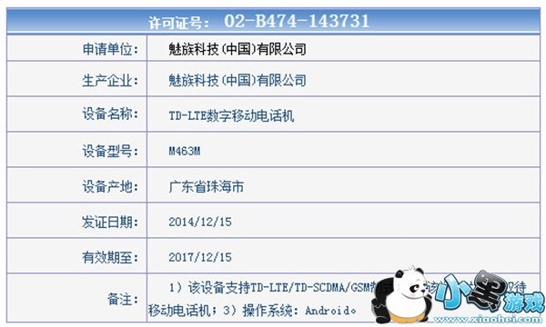 近日,我们在工信部发现了一款信号为M463M的魅族新机,支持TD-LTE/TD-SCDMA/GSM制式以及双卡双待,获得入网许可证的日期为12月15日。