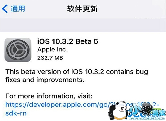 苹果今天凌晨推送了iOS10.3.2 Beta5公测版更新,已经加入苹果公测项目的iOS用户可以获得iOS10.3.2 Beta5推送更新。本次更新固件包大小为232MB左右,主要是Bug的修复以及性能的提升。小编这里为有需要的用户提供了iOS 10.3.2 Beta 5固件下载地址。