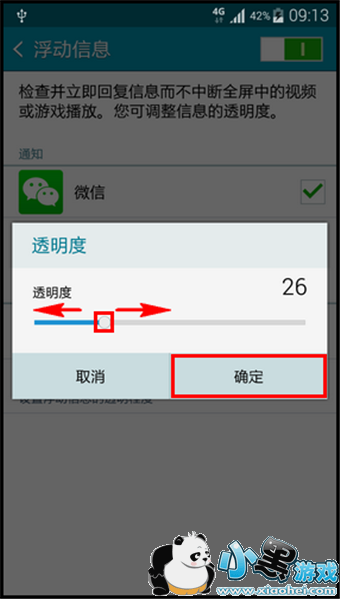 11.将【透明度】的滚动条向左或向右滑动,可以调节浮动信息的透明度,调整完成后,点击【确定】。