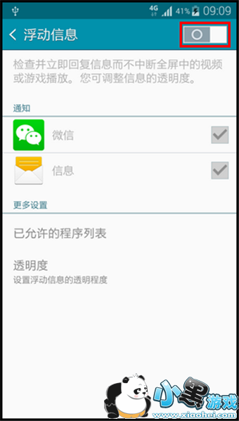 三星Note4支持浮动信息功能,可方便我们检查并即时回复信息,而不中断全屏中的视频或游戏播放。具体设置方法如下: