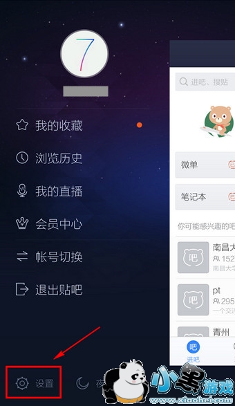 打开百度贴吧客户端,向右滑动唤出左侧菜单