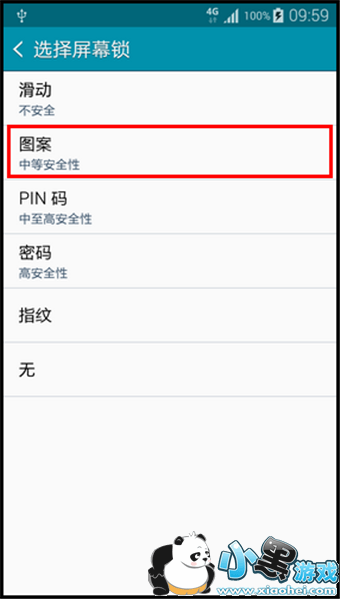4. 点击【屏幕锁定】,然后选择【图案】。