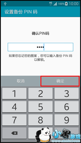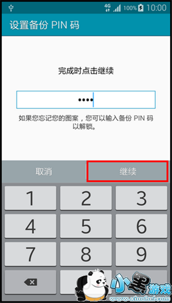 7. 输入备份PIN码,点击【继续】。(如果您忘记所设置的图案,您可以输入备份PIN码以解锁。)