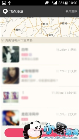 3、随机完成后,就可以看到漫游地点的附近的人了。