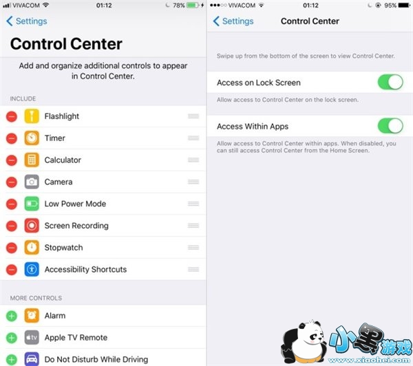 在控制中心的设置界面中,可定制化的元素变得更多。相比之下,iOS 10只有少得可怜的两项内容。