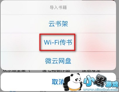 进入书架之后,点右上角图标,如下左图所示,选择“导入书籍”,然后如下右图所示“Wi-Fi传书”。