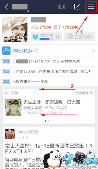 点击这个贴吧页的右上角的【菜单】图标或向左滑动唤出右侧的菜单