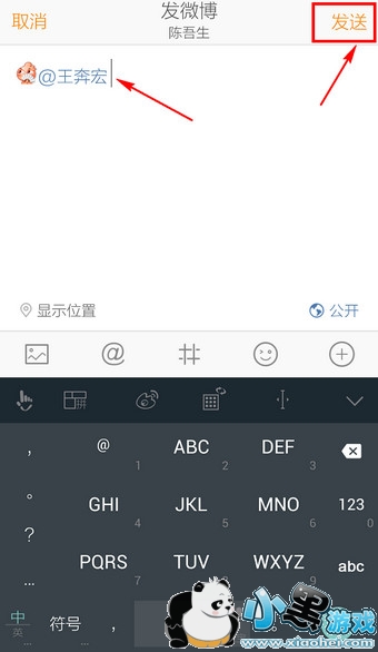 编辑界面已经用蓝色字体表示你@的好友了,点击发送即可