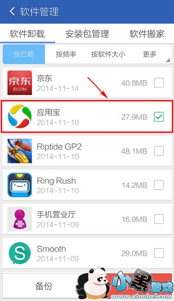 3.找到【应用宝】勾选后,点击底部的卸载即可