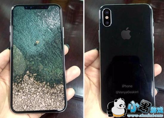 iPhone 8 前面板顶部为“刘海”式,呈“凹”字状。在凹下去的位置集成了前置摄像头、光线、距离传感器和新的生物识别传感器,整个面板正面浑然一体,没有任何实体按键。